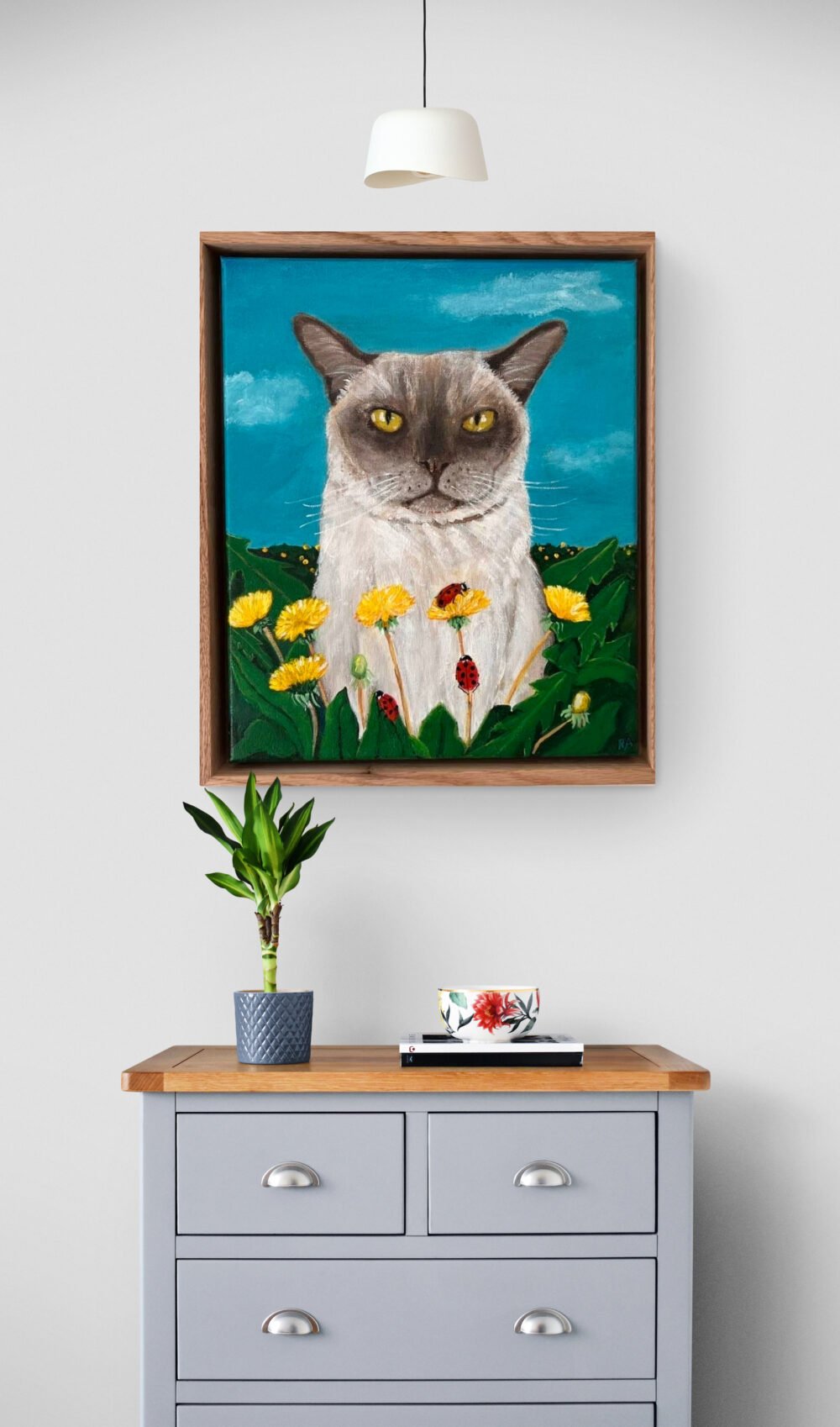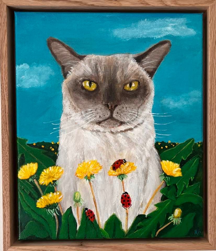 Description –Dandelions for Dayz, My Chocolate Burmese cats amongst the dandelions.