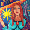 • Semi abstract landscape painting inspired by the golden colours of late afternoon Winter walks around Mudgee, NSW